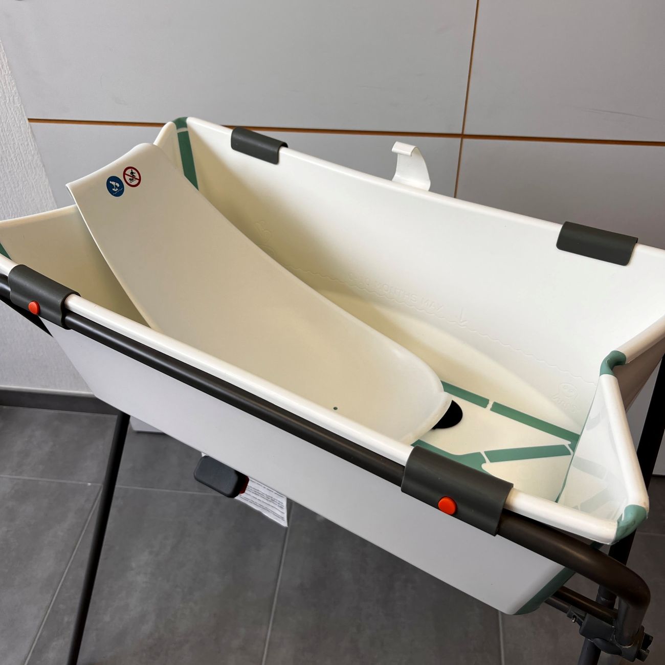 Les pieds de la marque Stokke accueillent la baignoire pour donner le bain à votre nourrisson jusqu’à ses 9 mois environ (maximum 10 kg).