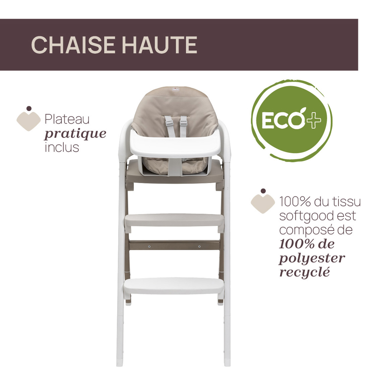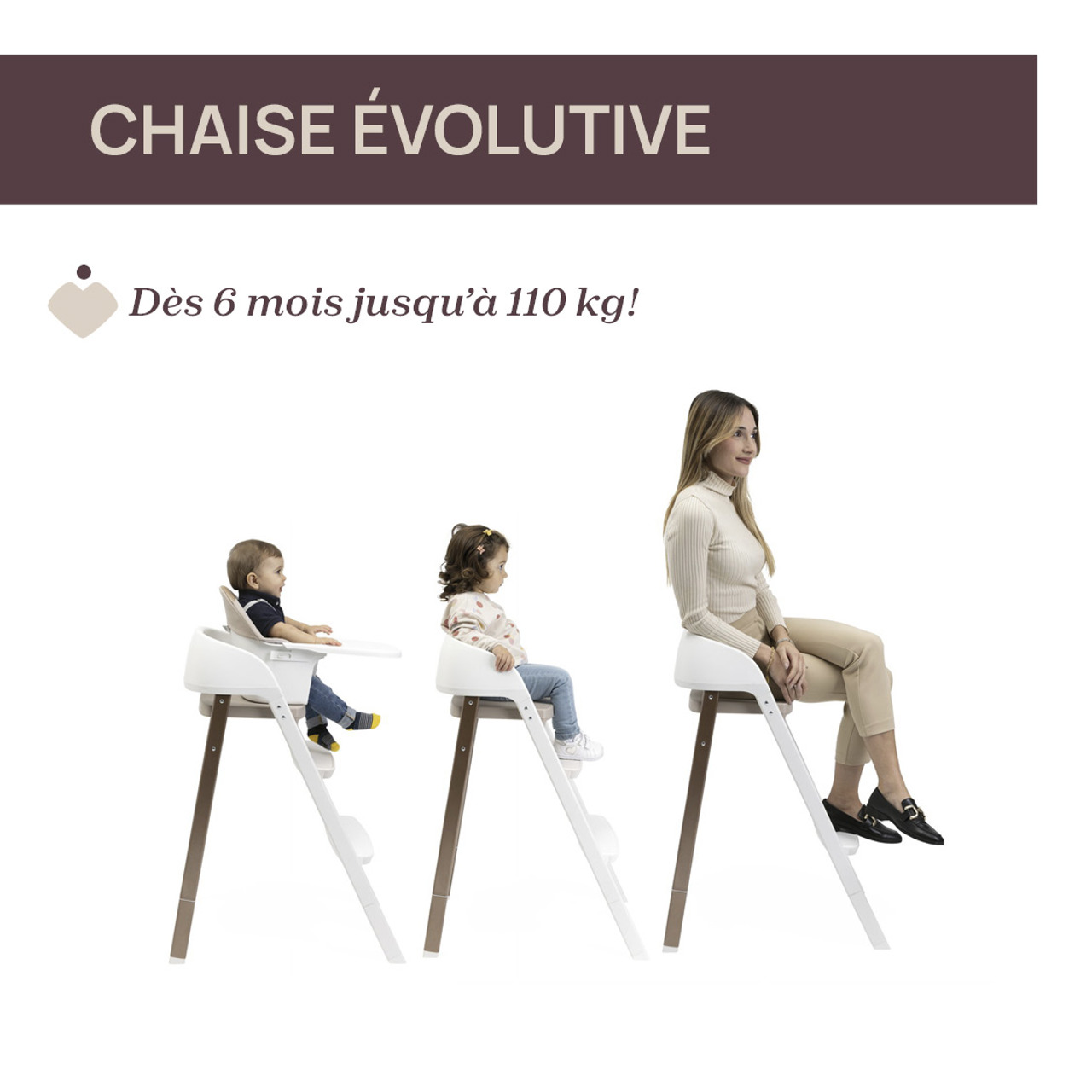 La chaise haute Crescendo Up de Chicco est évolutive et peut accueillir bébé dès ses 6 mois jusqu’à l’âge adulte, soit 110 kg maximum.