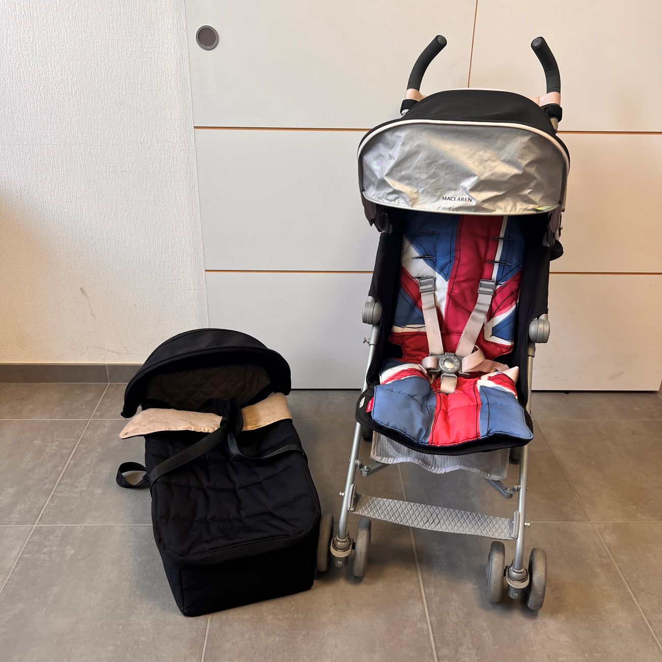 La nacelle Maclaren permet d’installer bébé face à vous dès la naissance et jusqu’à ses 5 mois environ (9 kg maximum).
