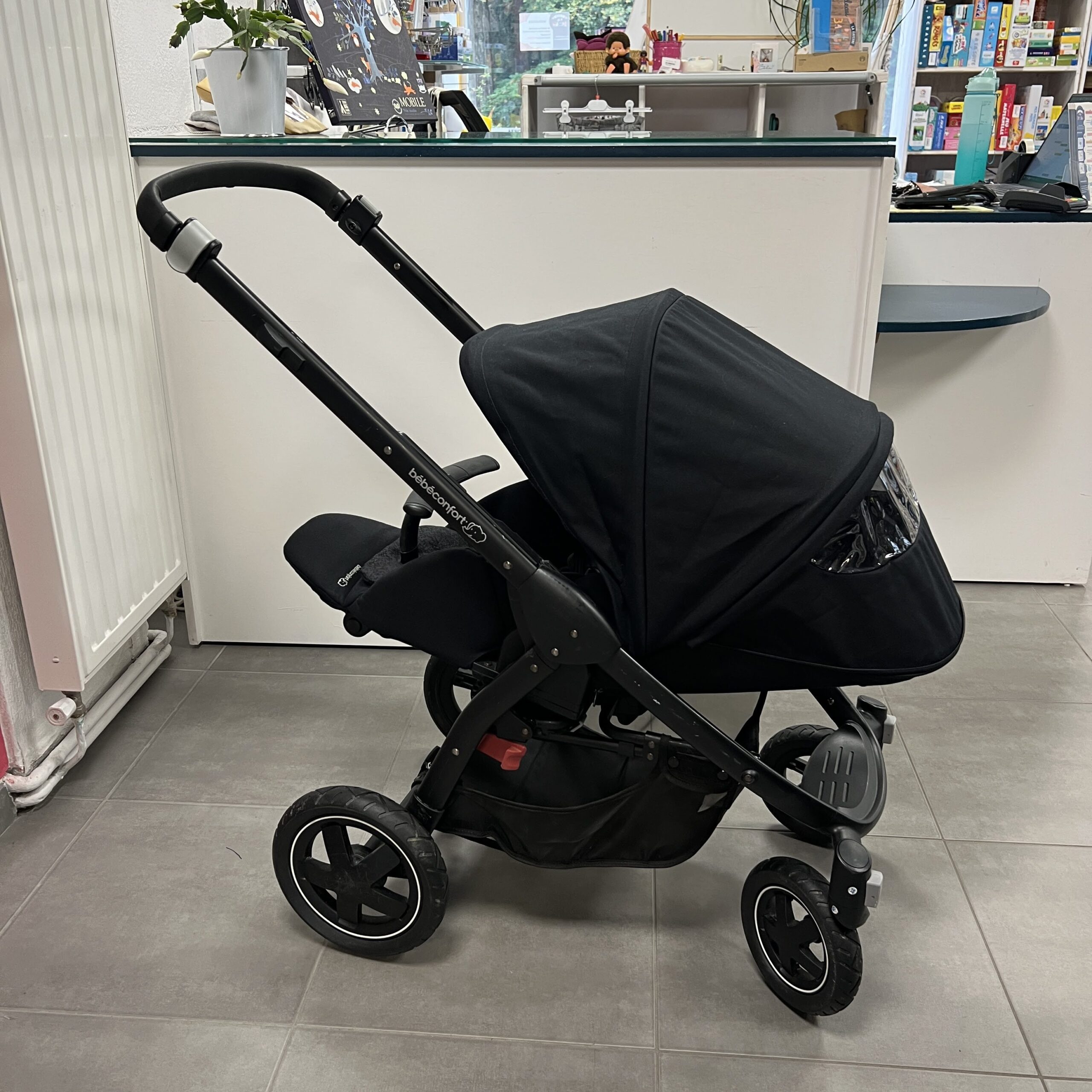 La poussette Stella de BEBE CONFORT est une tout terrain avec de beaux amortisseurs aux roues arrières.