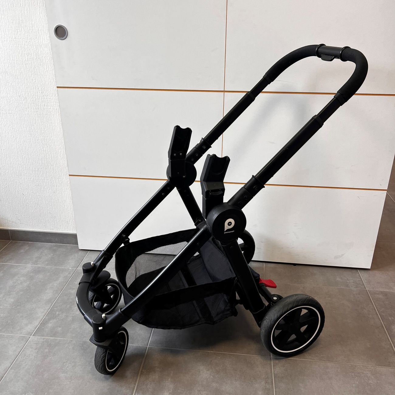 Inclus : un couvre jambe et une paire d’adaptateurs compatible avec le siège auto i-Prim (siège auto vendu séparément)